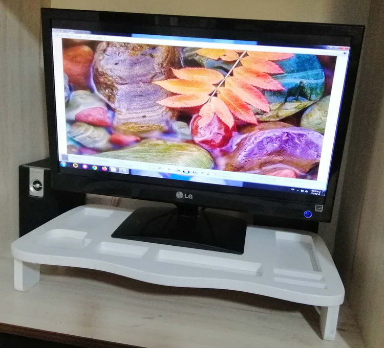میز زیر مانیتوری گروه طراحان کارا دکور برای هم سطح نمودن صفحه مینیاتور با چشم طراحی شده که در کنار افزایش ارتفاع سطح مانیتور، قابلیت مدیریت میز کار و جلوگیری از شلوغی لوازم روی میز از قبیل لیوان، موبایل، کاغذ و خودکار و... را داراست و در رنگ سفید، قهوه ای، مشکلی و طرح های پتینه چوب و سنگ گرانیت قابل ارائه میباشد.