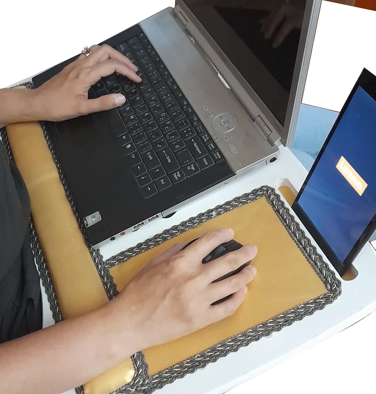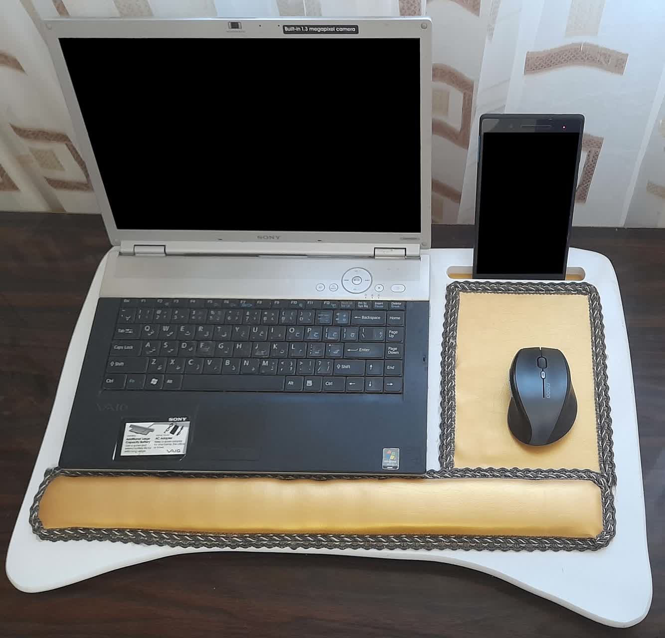 به منظور کار با لپ تاپ در حالت نشسته، به روی تخت، به روی میز کار و به منظور جلوگیری از آرتروز مچ دست هنگام کار با موس و کیبورد لپ تاپ، ساخته شده با ام دی اف مرغوب، با طرح ها ورنگ های سفید، مشکلی، طرح سنگ گرانیت قابل ارائه میباشد.